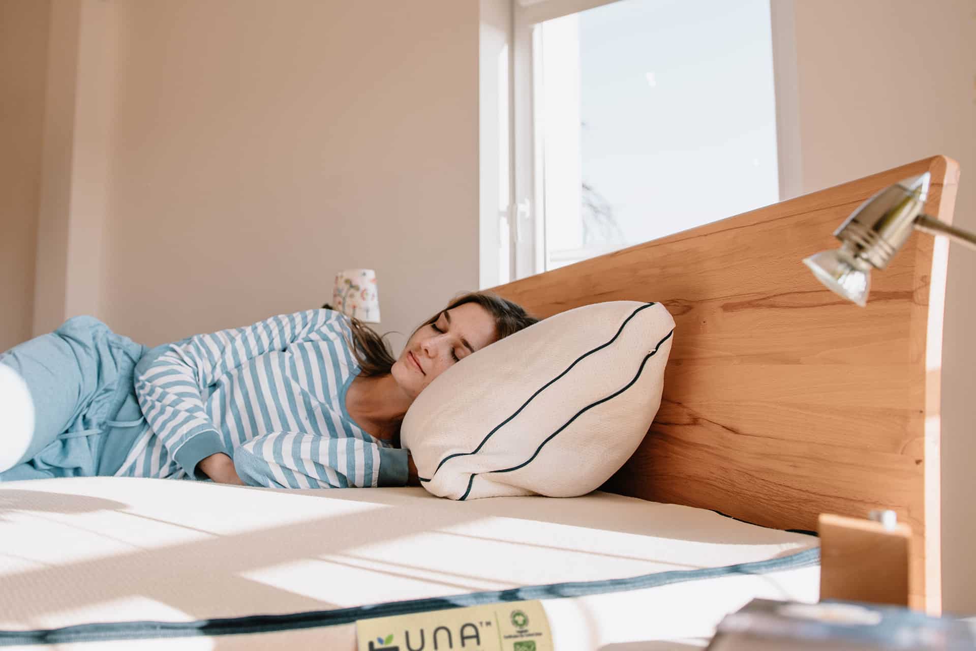 Der er ingen væmmelige overraskelser i vores Una madras. Vores 100 % økocertificerede materialer sikrer en sund søvn uden bekymringer. Den komfortable latex udvindes af saften fra kautsjuktræet, uden tilsætning af ildelugtende kemikalier. Så afslapningen er allerede garanteret.